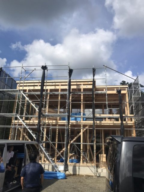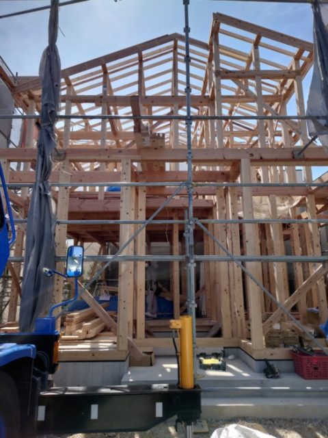 今週は大忙しで本日は日柄も良く3現場で建方工事中です。