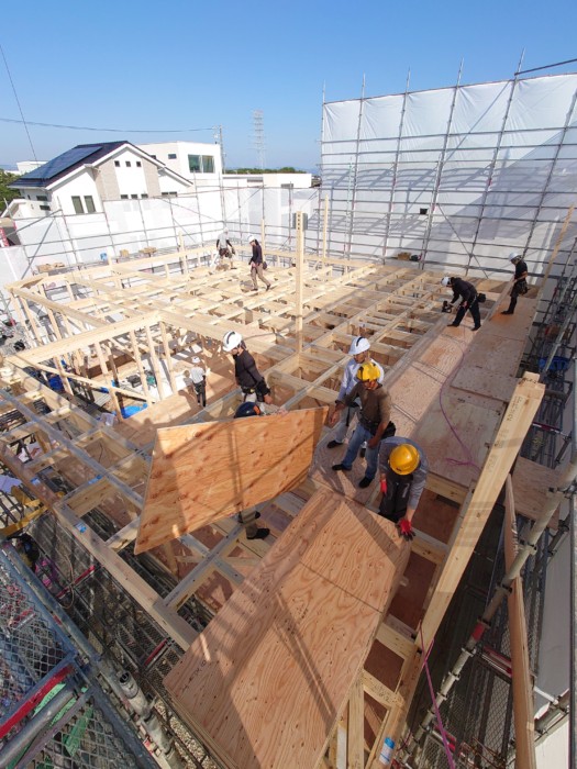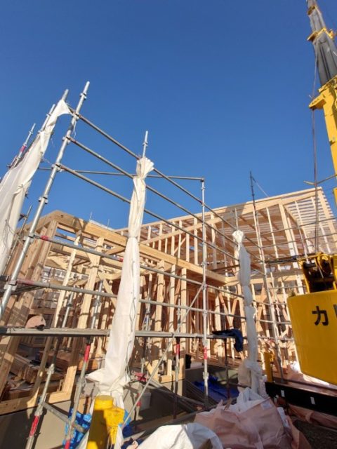 本日は豊橋中日ハウンジングセンターさんにてモデルハウスの上棟工事しております!!